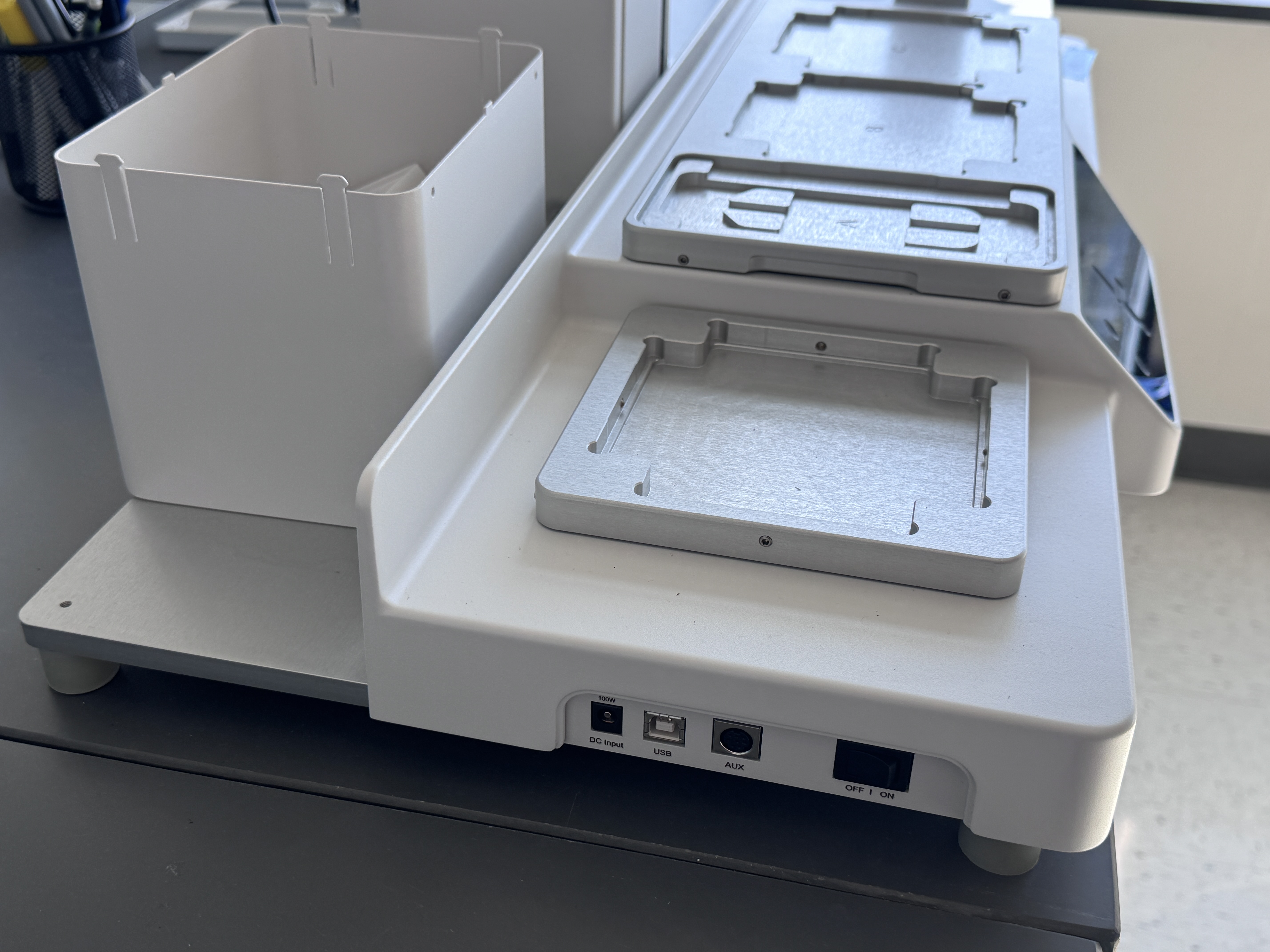 ?高通量處理能力:?? 配合多功能載臺(tái),可同時(shí)容納微孔板、試管架、深孔板等多種實(shí)驗(yàn)室器皿,輕松完成96孔板或384孔板的大規(guī)模樣本分配、梯度稀釋、PCR反應(yīng)體系構(gòu)建等任務(wù),將科研人員從重復(fù)性勞動(dòng)中解放出來(lái)。